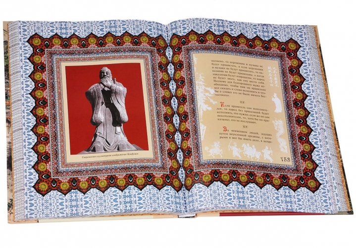 В книге использованы иллюстрации из китайской книги XVI века о жизни Конфуция - "Картинки о деяниях величайшего мудреца", гравюры Хельмана из изданной в Париже биографии Конфуция, произведения китайской живописи, произведения европейских художников на китайские темы и иллюстрации из книги "Китай, костюм, манеры и обычаи".